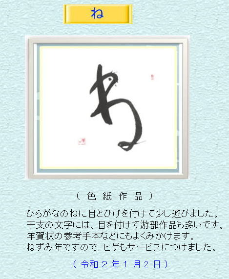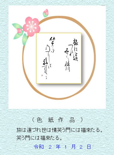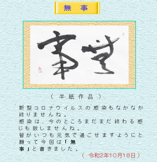 私は今年、80歳となりましたが、新しい気持ちで頑張ろうとは思って一日から筆を持って、小作品ですが、書き初めをしました。