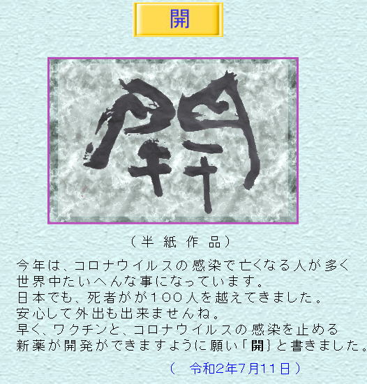 今年はオリンピックも日本で開かれますので、無事に終了できたらと願っておりましたが、新型コロナウィルスの為、中止になりました。あまり良い話は、聞こえてきません。