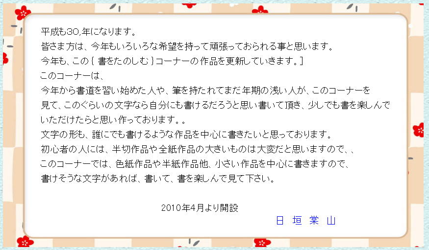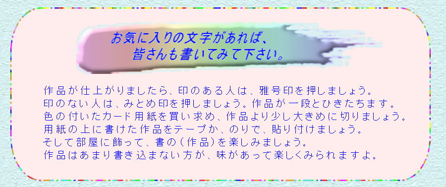 良く出来て来ましたら、色紙に書き、額にでも入れて楽しんで下さい。