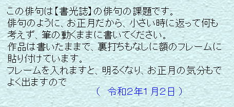 平成31年 1月2日の書き初めに、書いた作品です。